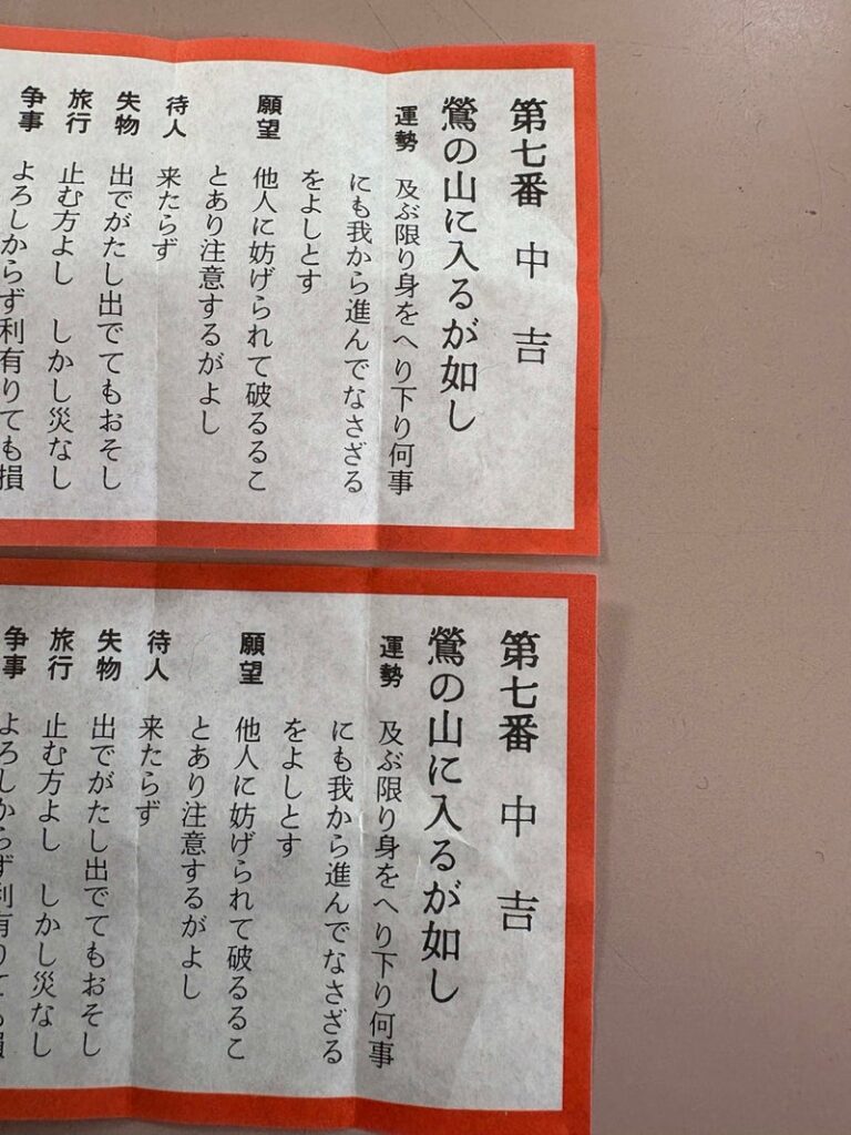 数あるおみくじの中から、私とYOKOさんがひいたおみくじが、まったく同じ内容だったのです。